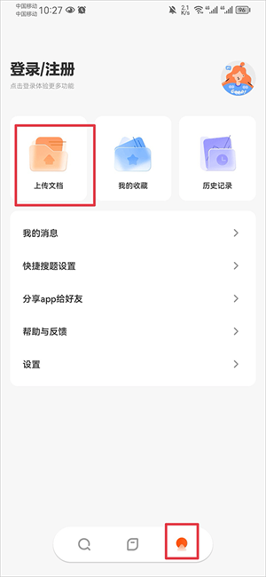5、也可以在我的界面点击上传文档,选择上传你的单题文档或是试卷文档等