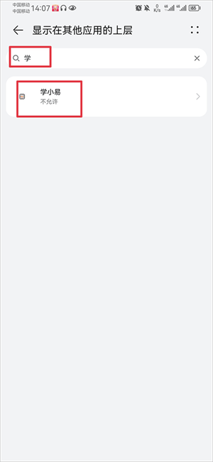 3、点击后会自动跳转至应用权限界面,然后再搜索框中输入学小易,搜索出来后并点击它