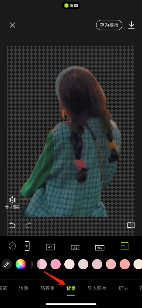 4、然后可以为抠出来的图片添加背景,点击最下方功能栏的背景就可以。