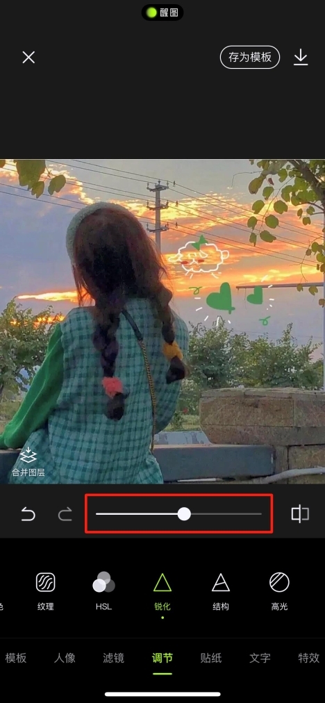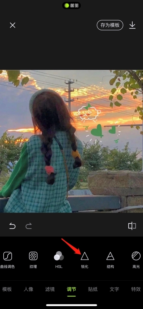 3、优化完毕以后向左滑动工具栏,然后点击“锐化”。
