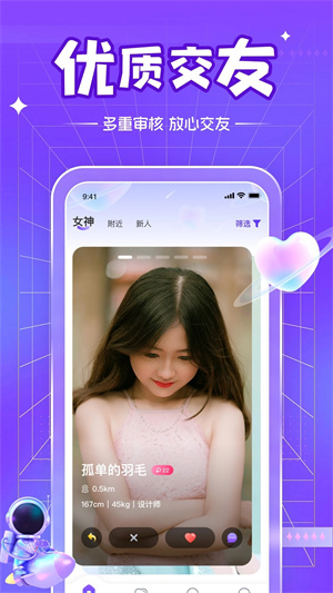 2.安全可靠:应用内环境安全可靠,无不良信息,为用户提供一个健康的交友环境。