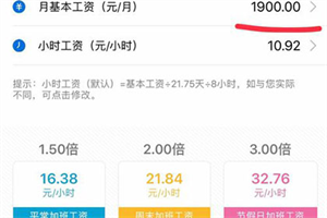 月基本工资就是指底薪数据,小时工资则默认为基本工资/21.75天/8小时,可以自行修改。