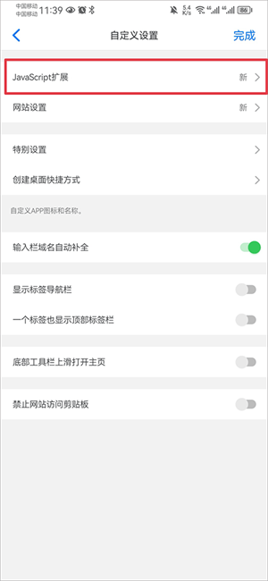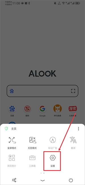Alook不同,主界面仅有几个搜索引擎和主流网站,再无其他元素,简洁干净。