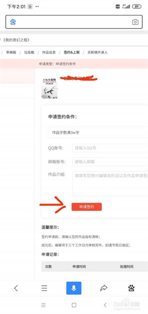 点击自己作品里面的签约与上架一栏。