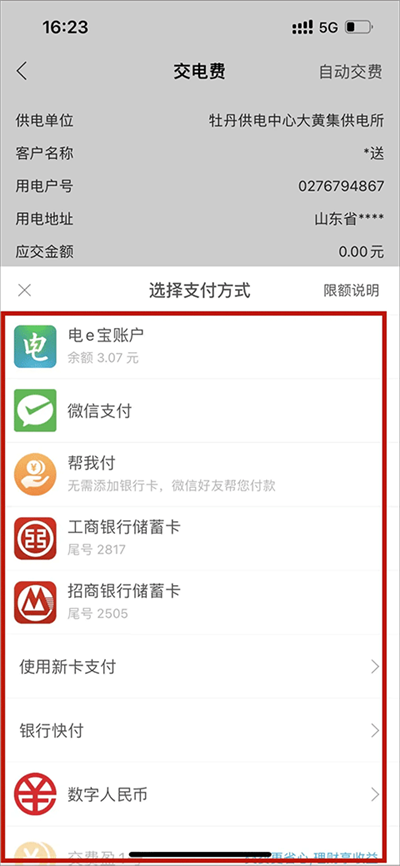 5、交电费:全新设计展示历史交费记录和使用户号交费,查找更方便。