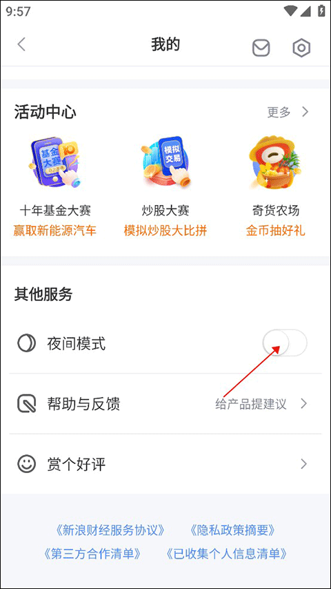考虑到部分用户因工作性质,常常需要在夜间使用我们的新浪财经app。然而,软件默认的白色背景色在夜间过于晃眼,对眼睛很不友好。因此,新浪财经在新版本中贴心地为用户推出了夜间模式,以便用户能更舒适地使用软件。接下来,就由小编为大家介绍如何开启这一模式。