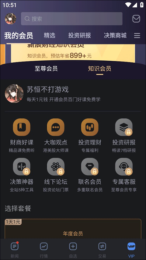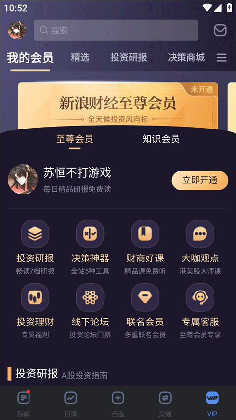 在新浪财经app里,除了普通用户,还有部分开通了两种vip服务的用户。这两种vip服务分别为知识会员和至尊会员。开通这两种服务的用户,不仅能享用普通用户所有能使用的功能,还可享有一些额外功能。接下来,让小编带大家瞧瞧这两种vip服务的差异所在。