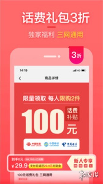 话费充值享4折优惠,更有机会领取6元现金红包,仅需10元即可参与。