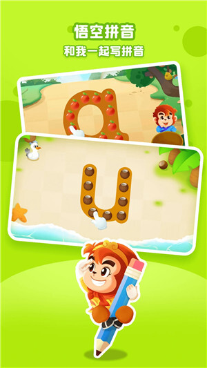 学校规定需在一个月内熟练应用拼音,要是此前毫无拼音基础,学起来会颇为吃力。借助悟空拼音,能轻松实现汉语拼音的启蒙教学。悟空拼音以生动的动画搭配专业播音员的配音,对汉语拼音口诀进行全新演绎,使小朋友们从视觉与听觉全方位认识、学习汉语拼音,既高效又有趣。