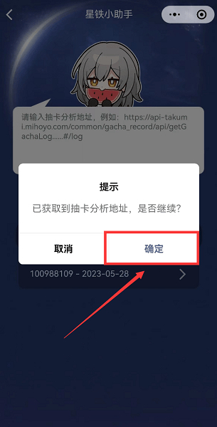 4. 返回到刚才的APP,点击“停止抓包”,随后便会自动跳转至星铁小助手小程序,点击“确定”,就能直接进入抽卡分析。