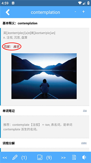3、接着是词根记忆,和词源说明。会告诉你这个单词中包含的词根和词缀,词源说了它的来历更加让人记忆深刻。