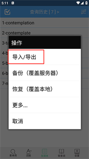词根词缀词典APP怎么导入单词