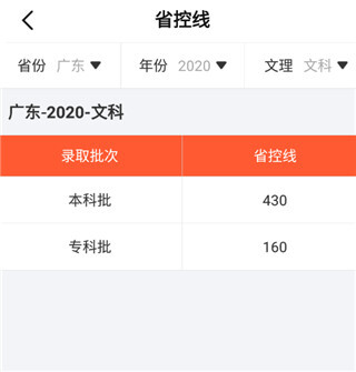 3、想要了解省控线的话,只需要输入省份,年份和文理,即可看到
