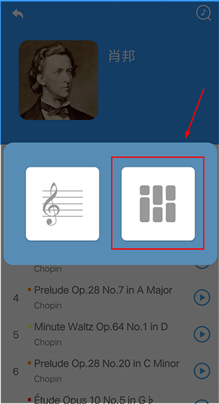 1. 开启乱弹琴app,挑选想要练习的钢琴曲目,例如:肖邦的相关曲目。