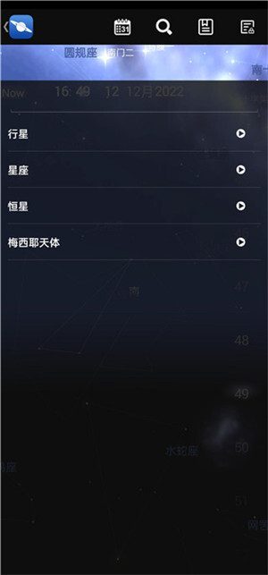 当用户打开这款软件,需点击右上角的菜单按钮,接着选择“增强现实”。待增强现实功能启用,用户可把手机对准天空,查看诸如星星、行星、星座以及银河系等天空中的天体。