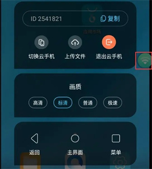 云手机的画质可以自己选择,也是在这个圆形信号里面,有急速、普通、标清、高清等几种任意切换。装好自己要用的以后就可以开始体验了,和手机使用是一样的。