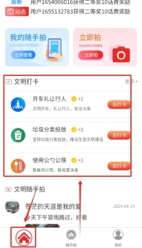 3、成功登录后,系统会自动跳转至软件首页。在首页的醒目位置,您可以找到 “文明打卡” 按钮,点击该按钮即可参与打卡。