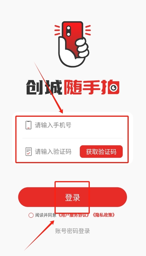 2、进入登录界面,在对应位置填入注册手机号,接着输入系统发送的验证码完成登录。