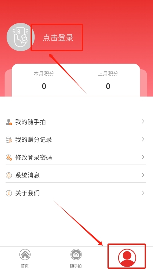 1. 开启创城随手拍软件,于界面底部找到 “我的” 选项卡,点击后进入个人页面,即可瞧见登录入口。